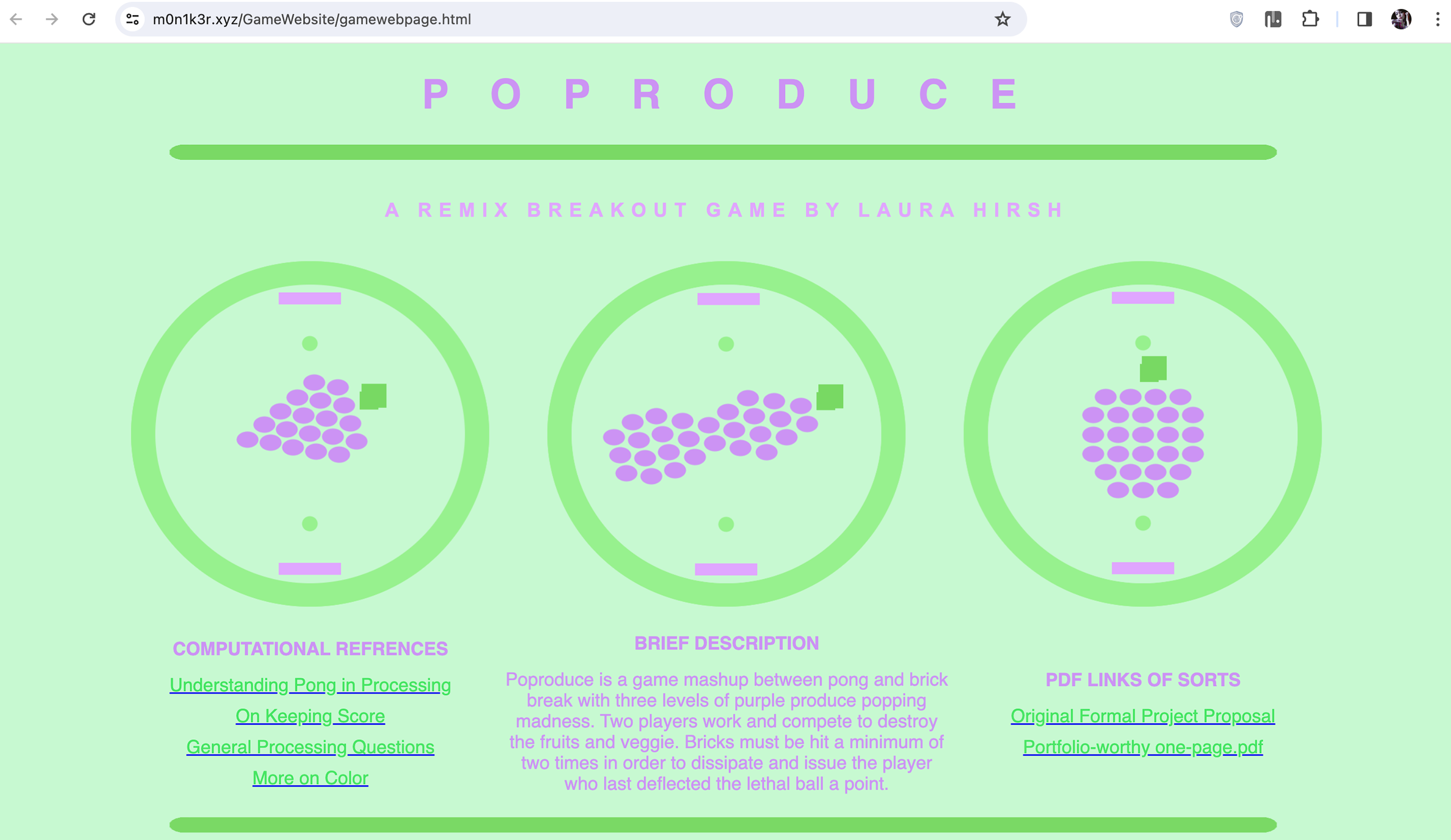 Website made to document the first Java game I made in Processing 3.